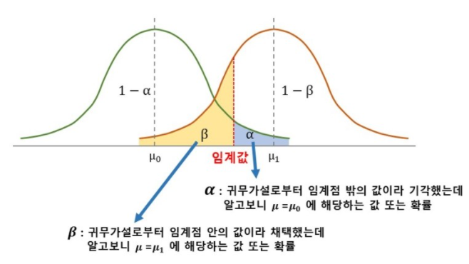 *여기서 연구자가 세우는 가설을 귀무가설(H0), 그에 반하는 가설을 대립가설(H1) 이라고 한다.