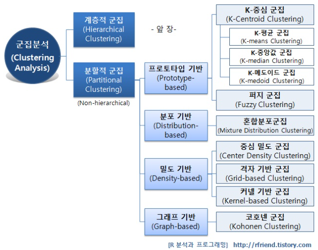 군집분석은 크게 계층적 군집화와 분할적 군집화로 나뉜다.