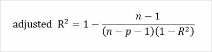 이러한 문제를 보정한 것이 수정결정계수이다. 수정결정계수는 표본의 크기와 독립변수의 수를 고려하여 계산한다.