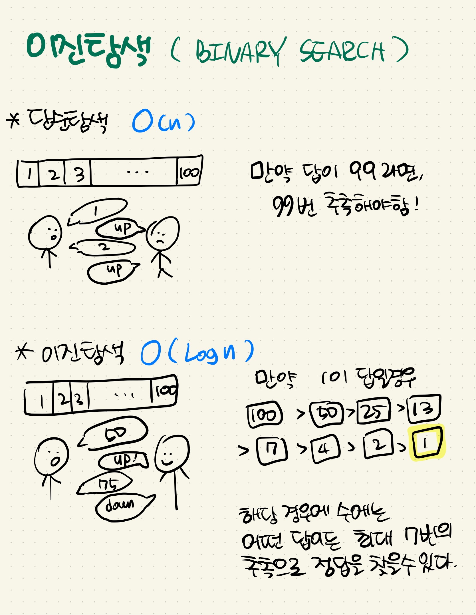 단순탐색과 이진탐색 옆에 써있는 저것은? 빅오표기법 ㅎㅎ!