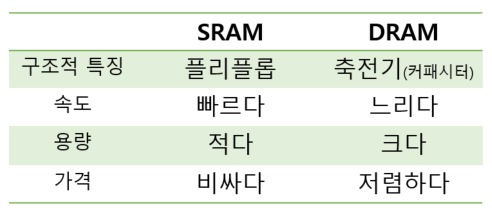 DRAM은 축전기의 충방전을 지속적으로 신경써야하므로 상대적으로 속도가 느릴수밖에 없다.